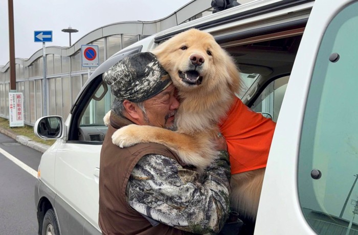 お迎えに向かった車に乗っていたディッパーくんは、お父さんの姿を見つけるなり鼻を鳴らしながら大喜び。今にも窓から飛び出してしまいそうなほど身を乗り出して、お父さんの元へ行こうと必死だったのだそう。