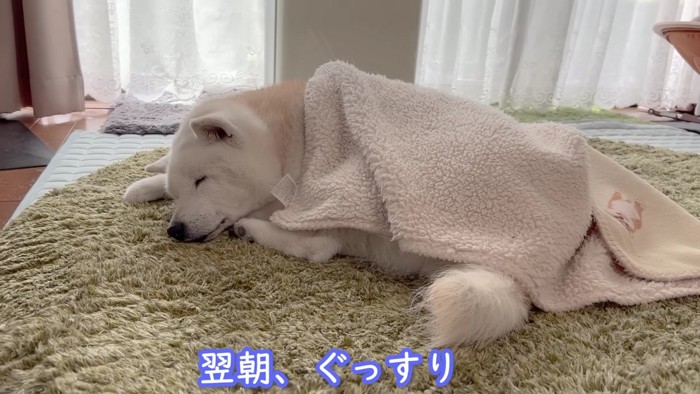 あいちゃんが寝不足な中ゆっくり目覚めると、目の前にお母さんの姿が!突然現れたお母さんに、状況が飲み込めないあいちゃん。目をキョトンとさせたまま、夢見心地でお母さんを見つめていたそうです。